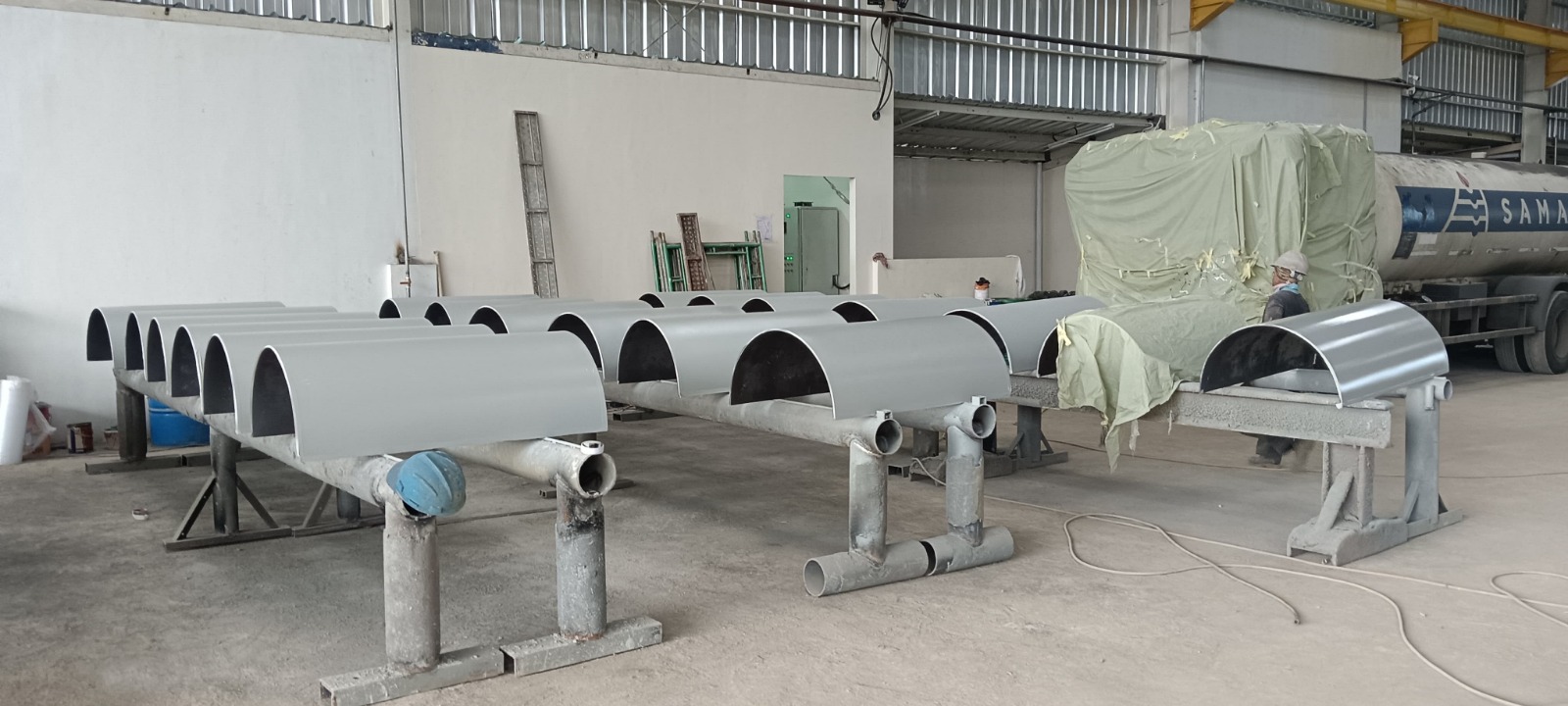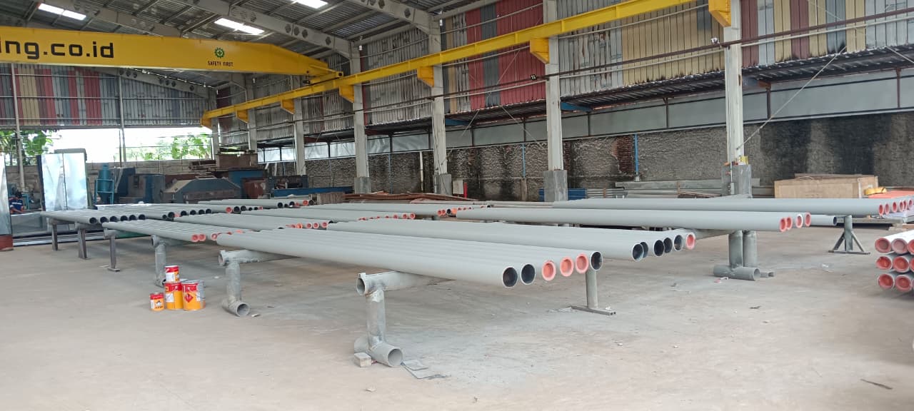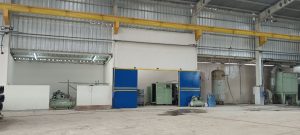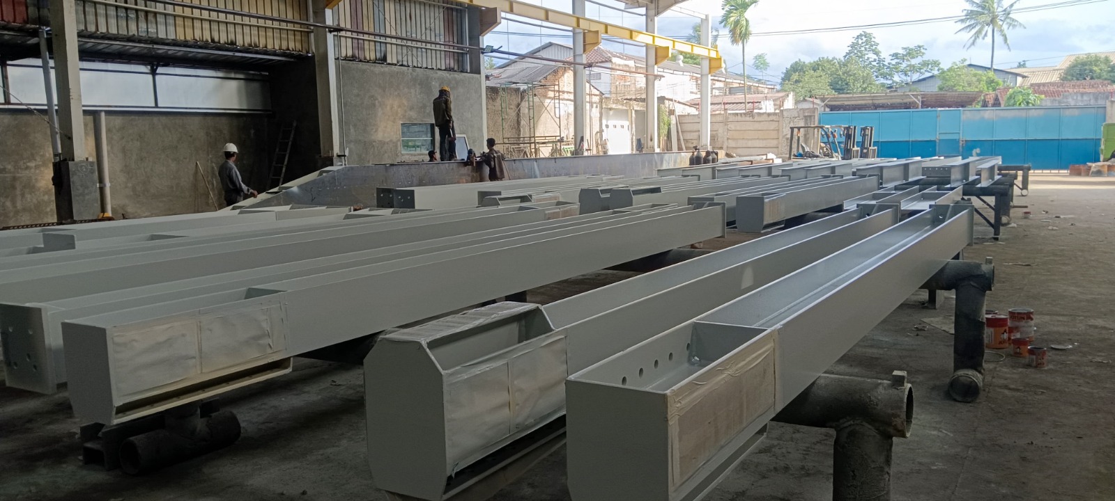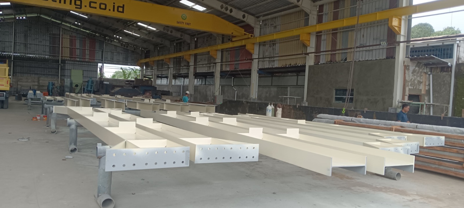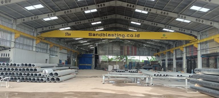 Fasilitas workshop : 1. Luas workshop 2800 m2 2. Over Head Crane 5 ton = 2 unit 3. Over Head Crane 3 ton = 1 unit 4. Ruang Blasting Besar 6m x 14m x 3,5m 5. Ruang Blasting Medium 4m x 9m x 3m 6. Ruang Blasting Kecil 3m x 3m x 3m 7. Fasilitas pasir Steel Grit 8. Forklift 5 ton 9. Painting area 10. Paint storage 11. Limbah B3 storage